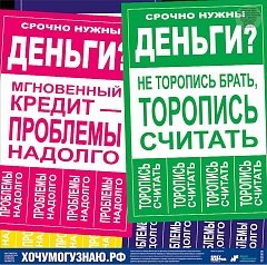 Кроме запоминающегося изображения, каждый плакат содержит ссылку на ресурс, который будет полезен каждому, кто заботится о здоровье личных финансов: хочумогузнаю.рф.