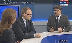 Ведущая: У нас в гостях – Дмитрий Янин, председатель правления Международной конфедерации обществ потребителей, и Михаил Сергейчик, заместитель начальника департамента финансов Томской области.