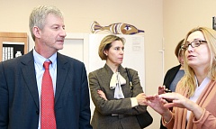 На фото слева направо: Андраш Хорваи, Директор и Постоянный представитель Всемирного банка в России; Ирина Давыдова, переводчик; Анна Зеленцова, стратегический координатор Проекта
